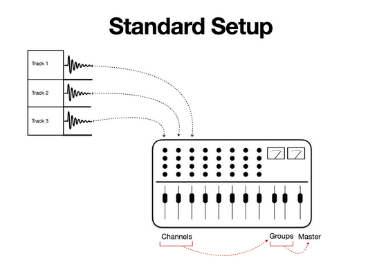 - Buss Instances: All the channels in an analogue console typically go to a master bus. In larger consoles, signals are routed to group buses and then to the master. To emulate this signal flow in your DAW, add buss instances as the first insert on your group and master tracks.