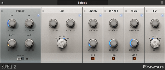Fully parametric equalisers can take this concept further and create custom EQs for specific musical notes. This way, we can equalise each element of the song in the context of its key and control the notes and harmonics resonating on each instrument. We can create these types of EQs by using Equalisers like SonEQ 2. Set as many bands as you need to frequencies related to a specific note, and you are good to go. For example, A basic EQ in A could have 60, 110, 440, 1320, and 8800 Hz bands. Then save it as a preset for any song tuned to that key.