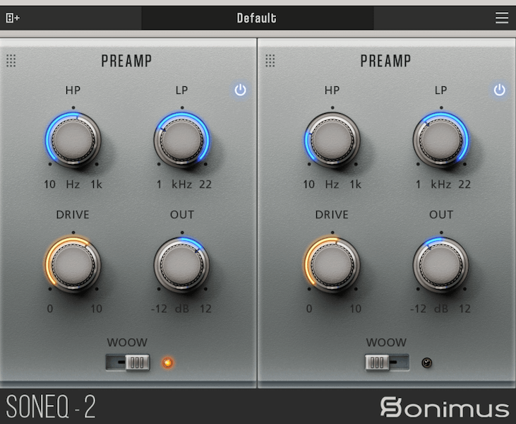 Combine as many High-Mid and Low-Mid bands as needed to shape the tone to taste. And by rearranging the modules you will get subtleties in the sonic character of your tracks. You can also get creative and turn SonEQ 2 into a saturation plugin by removing all the EQ bands and pairing two Preamp modules. Add drive at the beginning of the chain and then filtering in the second module to enrich harmonically the busses in your mixes.
