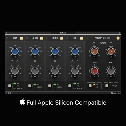 Get the best of the 4000 EQ series in one single module. Whether you want a surgical EQ or abroad and musical boost you can get it quickly with this plugin. Add to the equation a filter section and the Sonimus signature drive knob and you get a swiss knife in your mixing toolbox.
